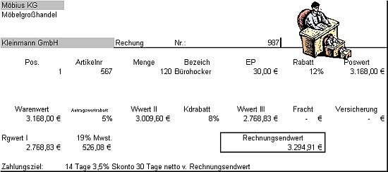 zur Berechnung s. auch nochmals Zahlungsbeträge nach Skontoabzug berechnen.