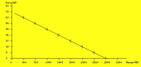 Vorgabe für Teilaufgaben a+b: Vier Produzenten bieten jeweils 450,00 kg eines Artikels an. Sie sind bereit ihre gesamte Menge zu jedem beliebigen Preis anzubieten, sofern dieser mindestens 9,00 Euro je kg beträgt.