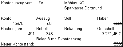 zur Berechnung s. auch nochmals Zahlungsbeträge nach Skontoabzug berechnen.